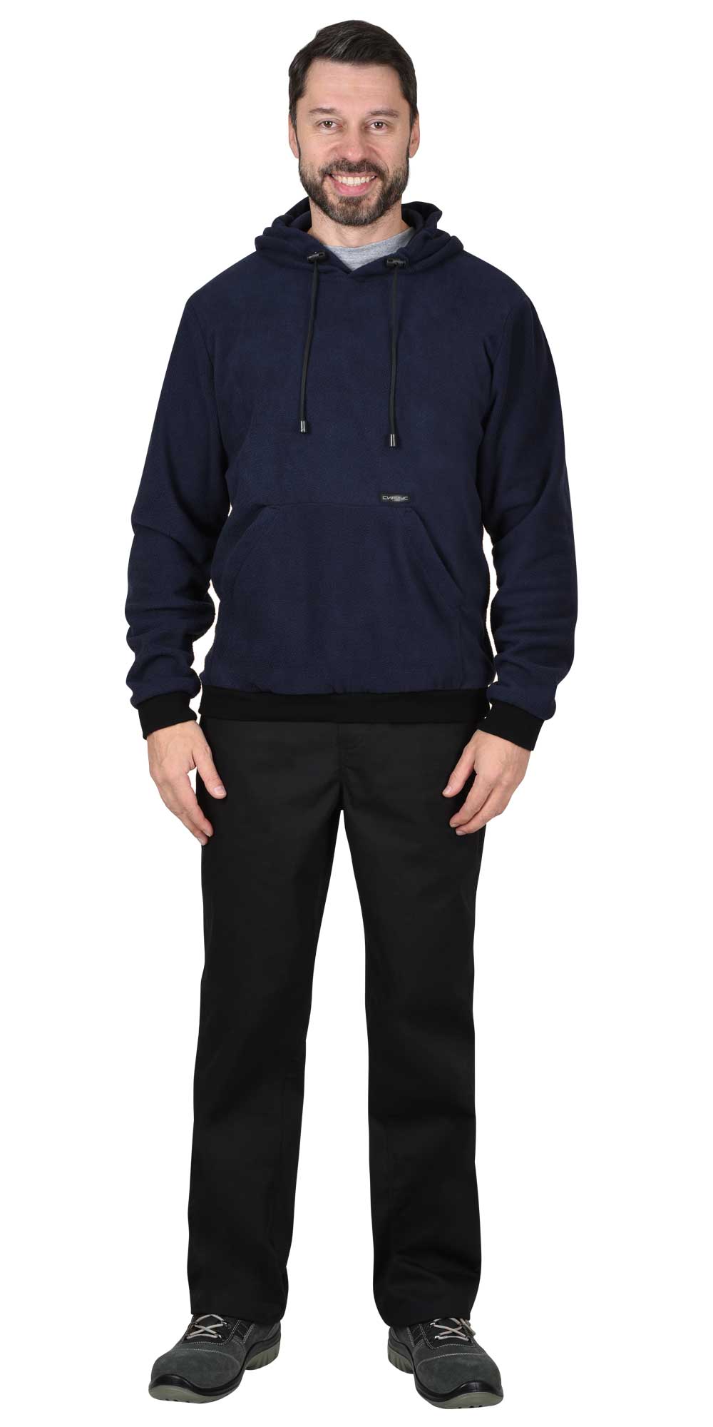 Толстовка изготовлена из качественного трикотажного полотна, может использоваться в качестве повседневной одежды или надеваться под спецодежду. Изделие имеет длинные втачанные рукава, заканчивающиеся манжетами, плотно облегающими кисть. Овальная горловина окаймлена бейкой из двойного трикотажа. Швы оформлены двойной строчкой, обеспечивающей изделию прочность и эластичность. Общий силуэт – свободный, обеспечивает удобство при выполнении любых работ.