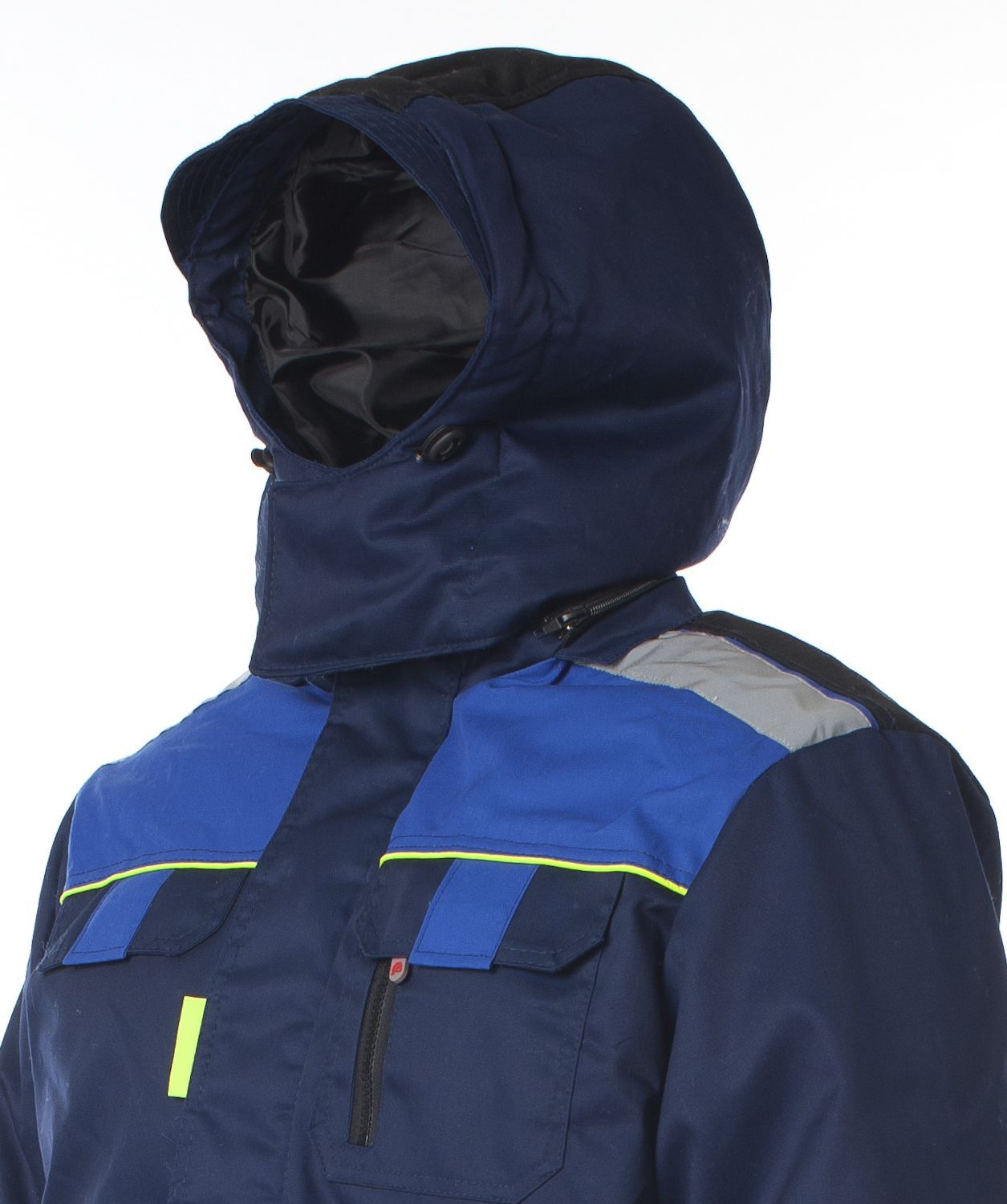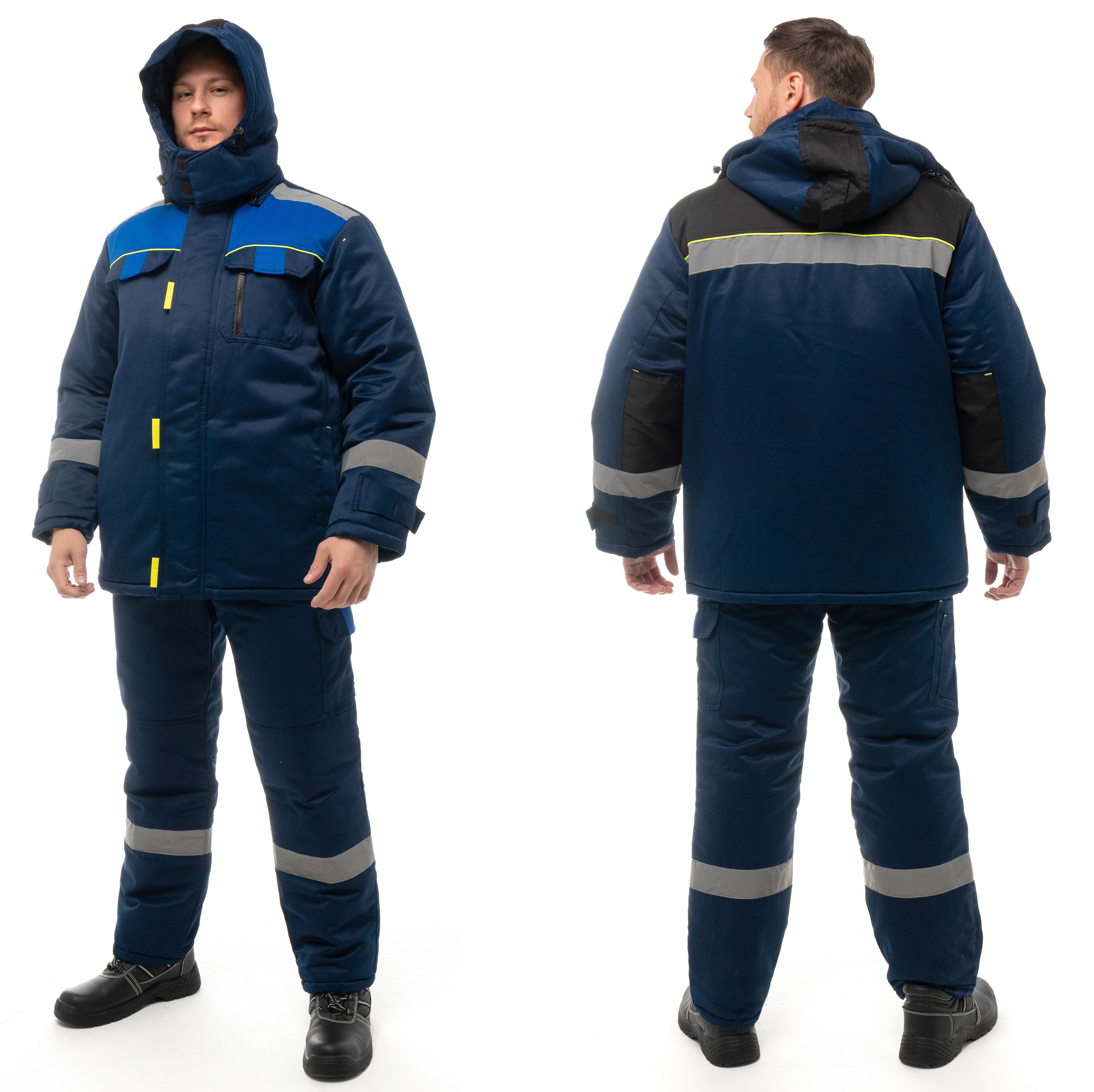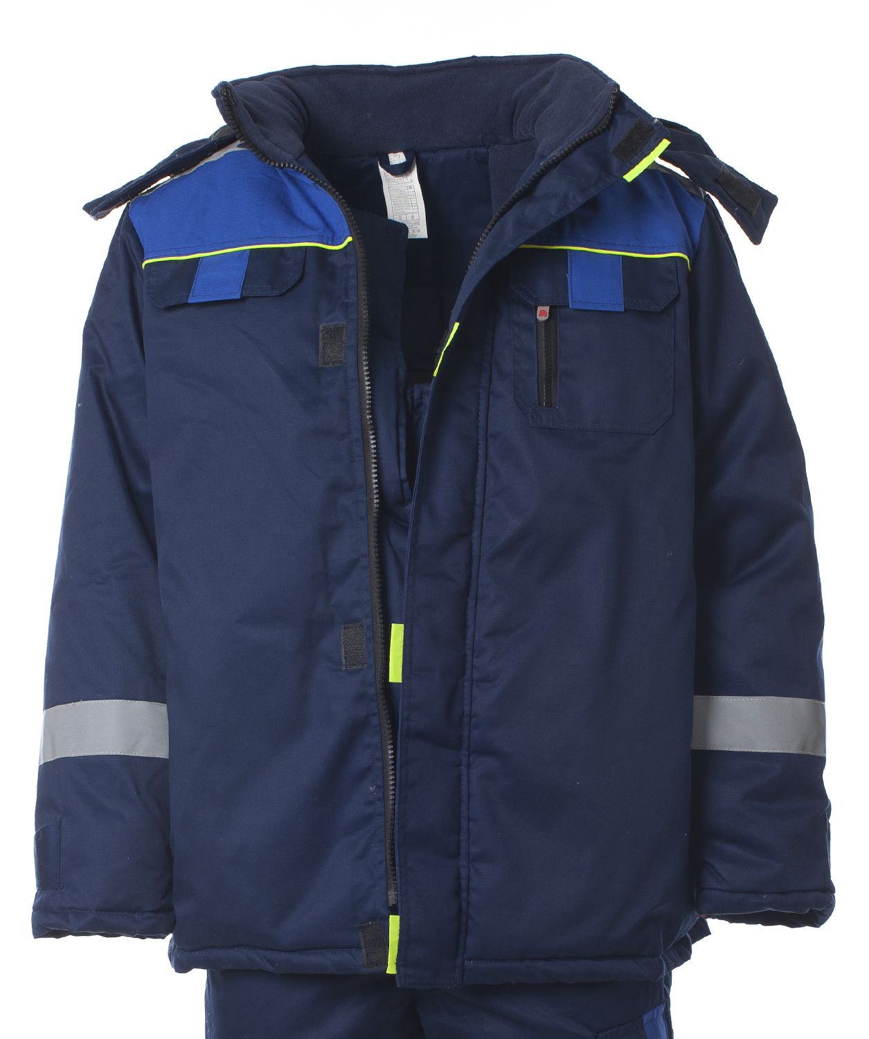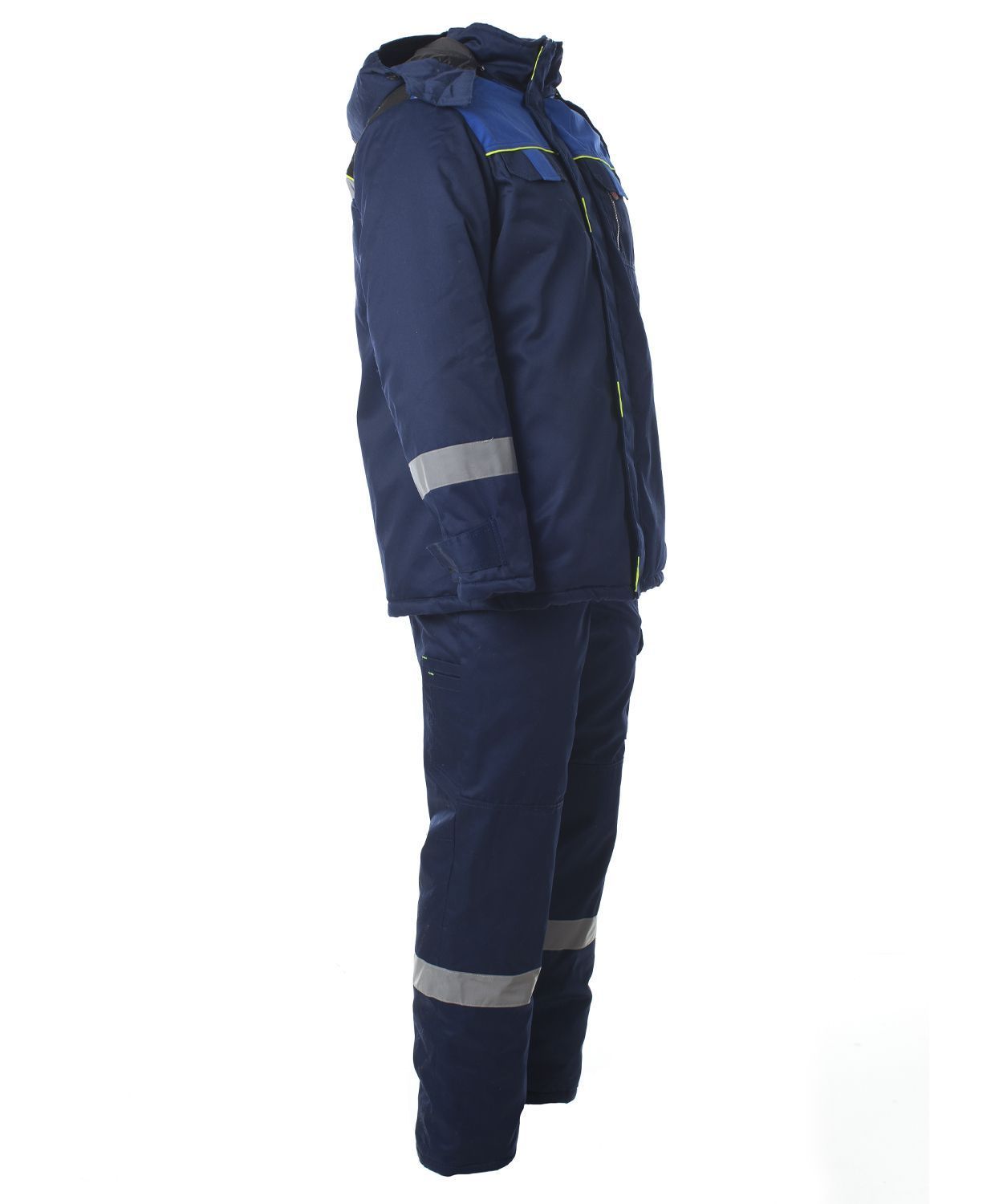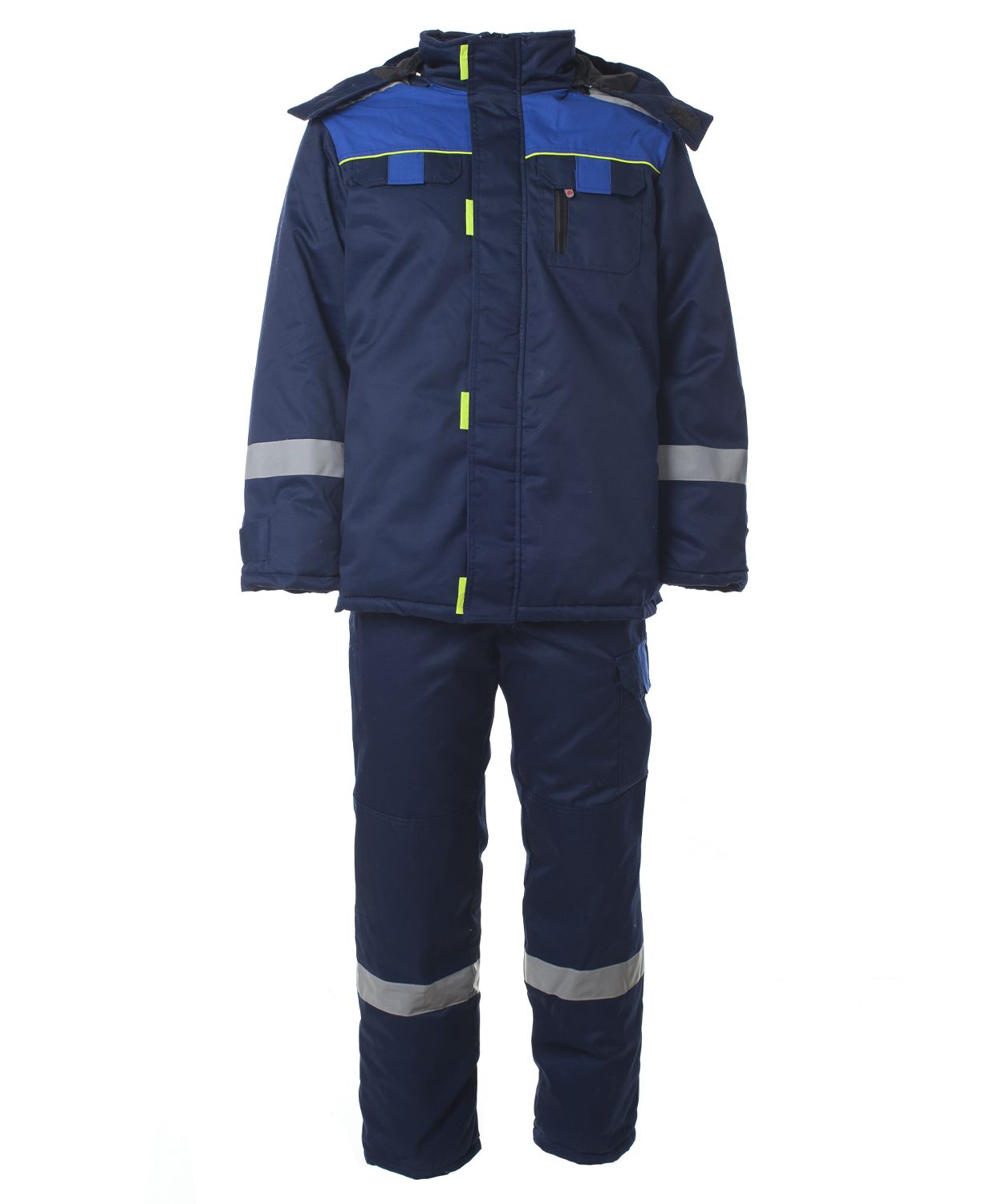 Комплект состоит из тёплой куртки и полукомбинезона. Костюм рассчитан на эксплуатацию в морозы на открытом воздухе и в неотапливаемых помещениях. Ткань устойчива к механическим воздействиям. Куртка отличается удлинённым кроем, хорошо защищает поясницу от продувания. Застёгивается на молнию с удобным большим язычком. Центральная застёжка защищена накладным ветрозащитным клапаном. В верхней части расположены косые врезные карманы. В нижней – вместительные накладные с клапаном на кнопках. Полукомбинезон оснащён эластичной вставкой в талии. Лямки регулируются пряжками по длине.