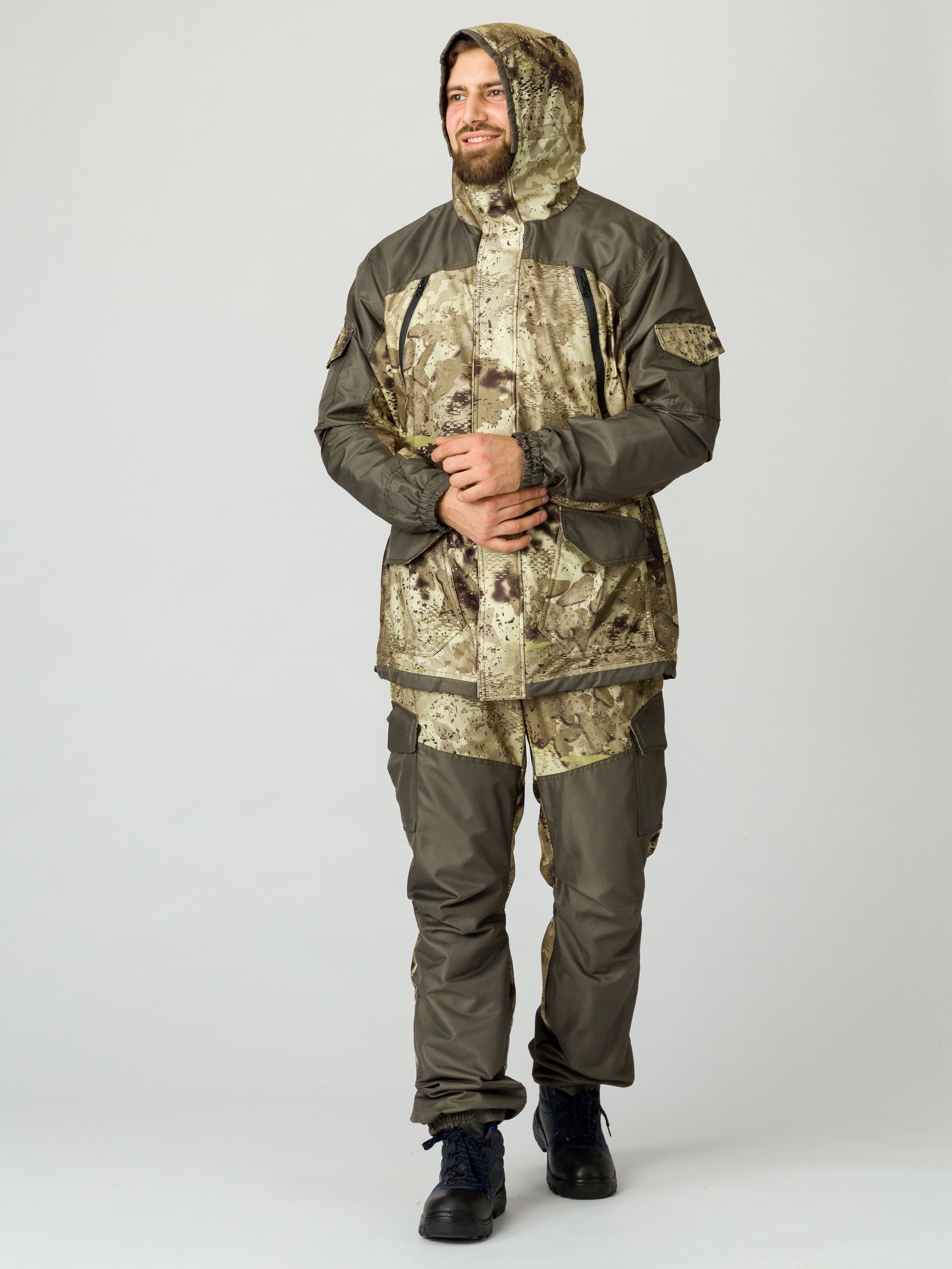 - ветровлагозащитный костюм для охоты и рыбалки состоит из куртки и полукомбинезона