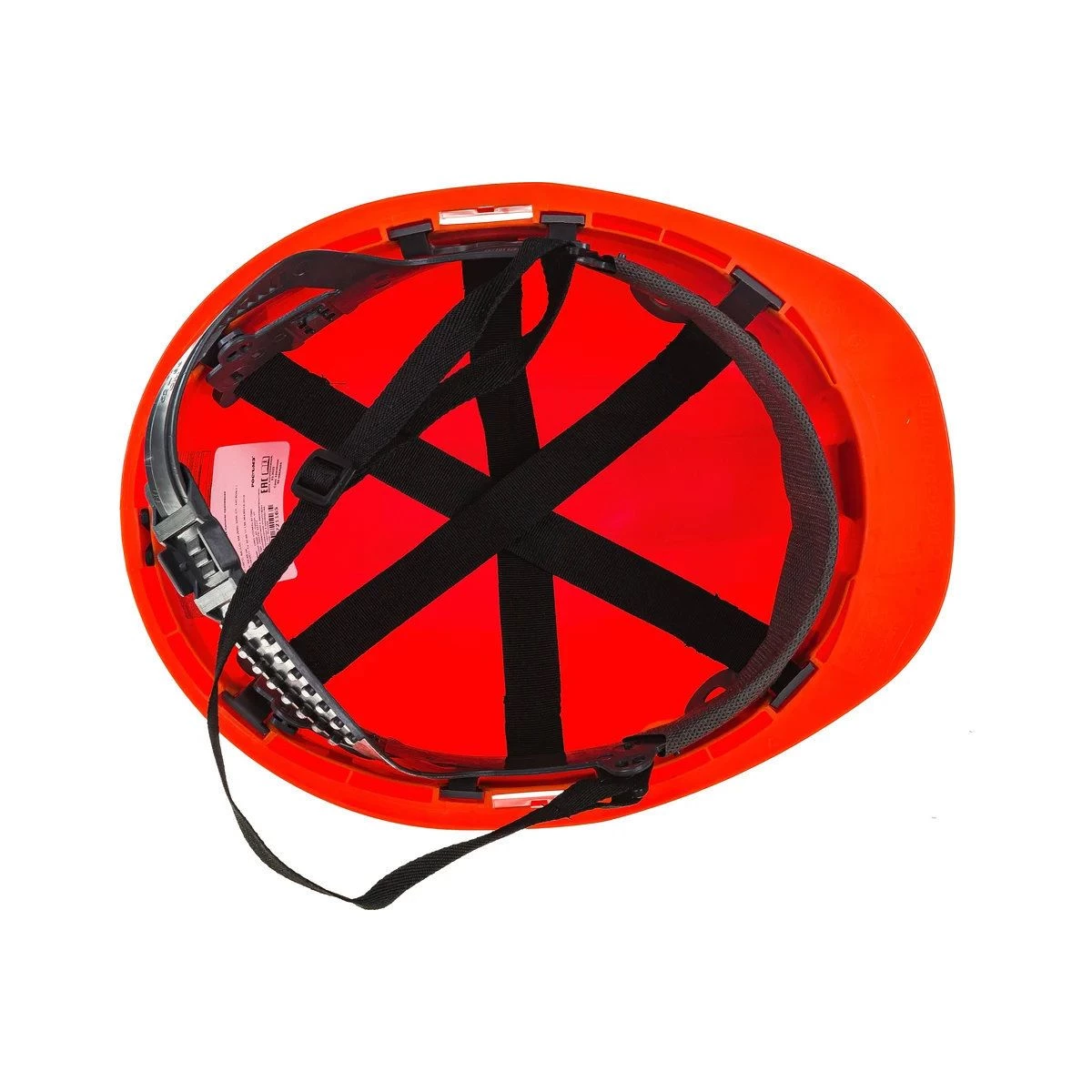 Защитная каска с пластиковым оголовьем и ленточным регулятором размера. Имеет простую конструкцию, оснащена пластиковым амортизатором, имеющим 6 точек крепления. Предусмотрено использование зимнего подшлемника, защитного лицевого щитка и наушников. Комплектуется подбородочным ремнем и лентой от пота.