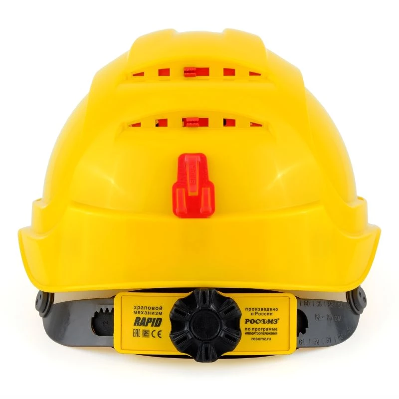 Защитная каска с текстильным оголовьем и плавным регулятором размера. Имеет комфортную внутреннюю оснастку, обеспечивает отличную вентиляцию внутреннего пространства. Оснащена мягким текстильным амортизатором, имеющим 6 точек крепления и храповым механизмом регулировки размера. Материал текстильного амортизатора обладает превосходными демпфирующими свойствами. Предусмотрено использование зимнего подшлемника и защитного лицевого щитка. Комплектуется подбородочным ремнем и лентой от пота.